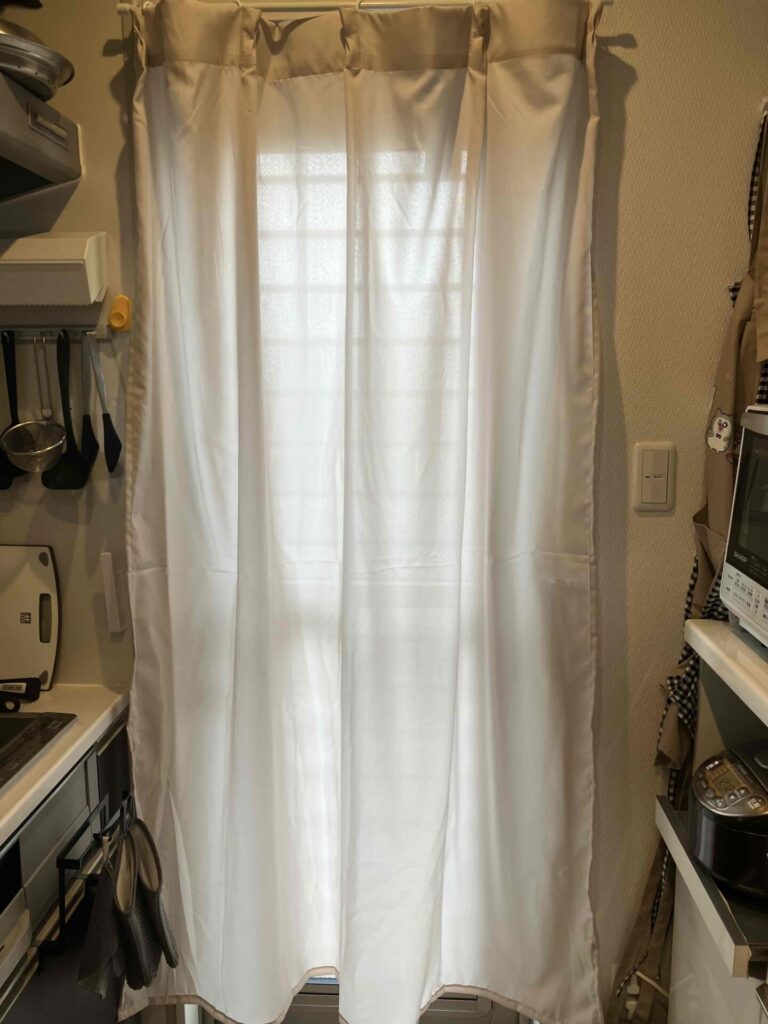 勝手口のカーテンは、100均アイテムだけで設置できます。