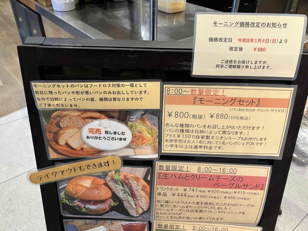 これまで¥680(税込)で提供されていたパン食べ放題のモーニングセットは、**現在¥880(税込)**に価格改定されています。